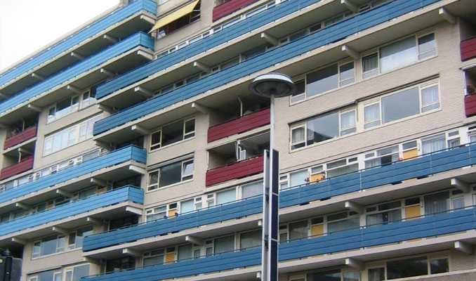 Appartementsgebouw De Katterug in Tilburg is tijdens de bouw geheel voorzien van houten kozijnen en deels voorzien van ongeïsoleerde aluminium schuiframen.