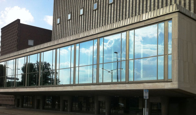De vliesgevel in de foyer van de Statenzaal (oorspronkelijk voorzien van standaard isolerende beglazing en een niet meer functionerend zonweringssysteem) werd geheel gestript en opnieuw ingevuld met nieuweHR++ zonwerende beglazing met een speciaal bepaalde verhouding tussen licht- en zontoetreding (de zogenaamde LTA/ZTA-waarden).